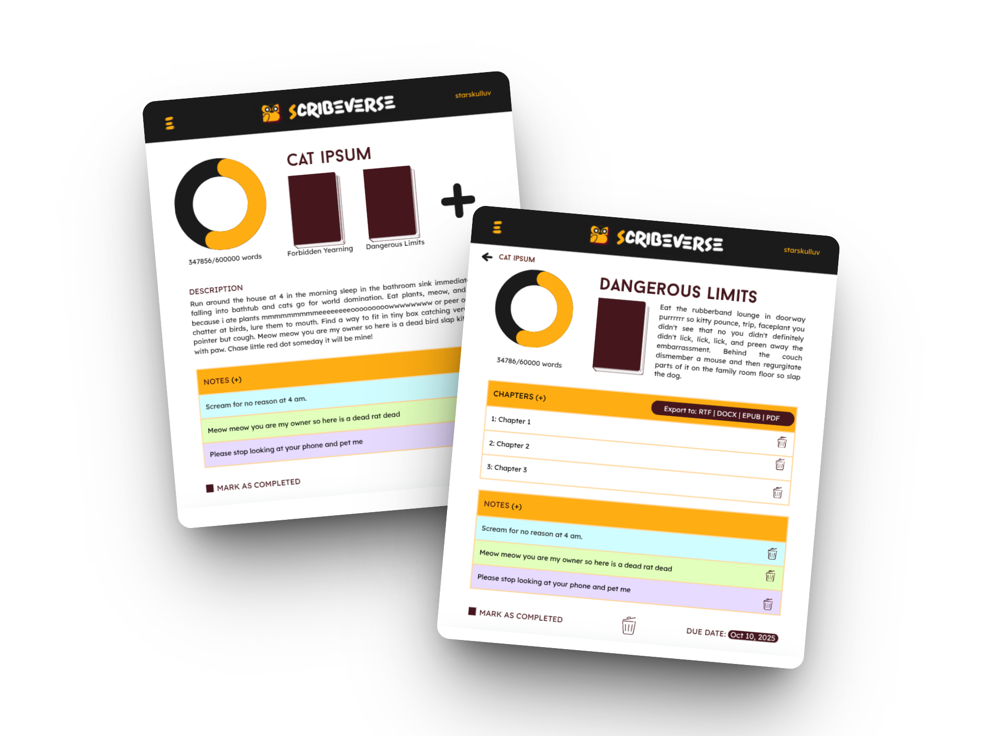 You've got 11 WIPs, 3 AUs, 5 plot holes, and a very compromising browser history. Scribeverse is your command center to finally complete your writing projects.